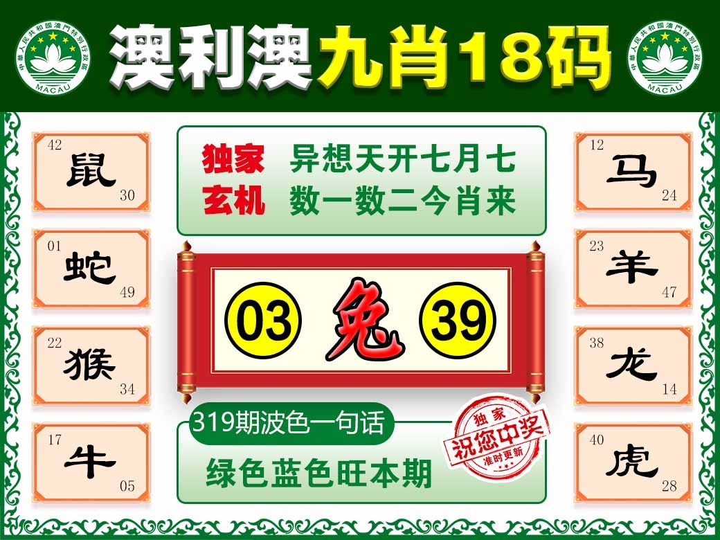 | 九肖 | 鸡虎牛鼠狗蛇猪马龙 | 开:鼠18 |